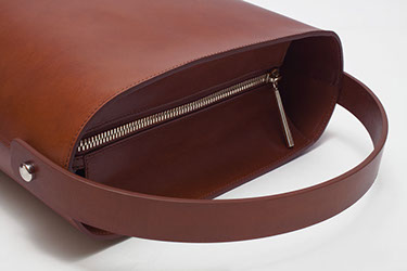 A modern interpretation of the bucket bag. The perfect fashion forward bag that fits an iPad Air or similar 10" tablet placed upwards. Handcrafted with fully natural vegetable tanned leather from Tärnsjö Tannery, Sweden. Worlds most organic leather which ages beautifully over time and gives a personal patina. Unlined inside with two pockets and zippered lid.